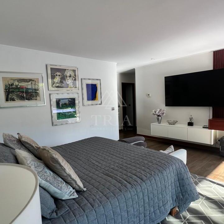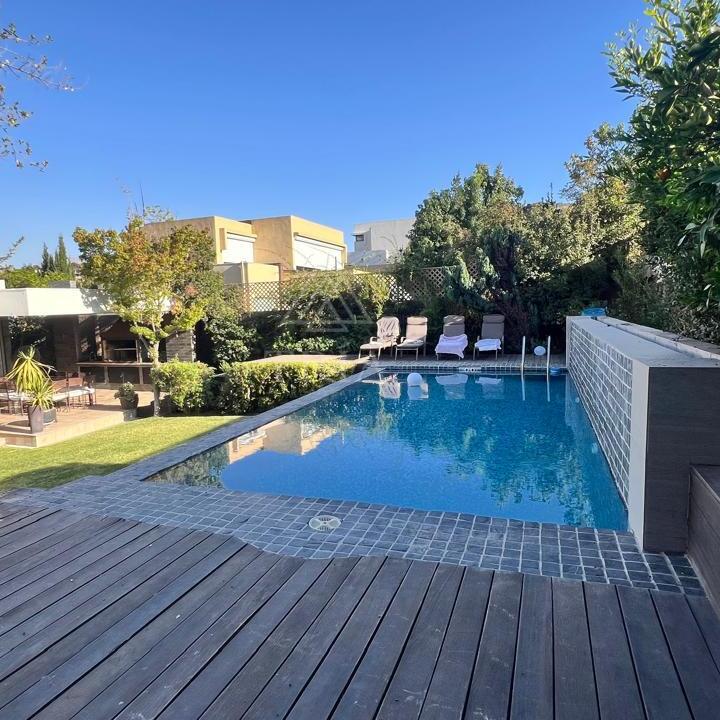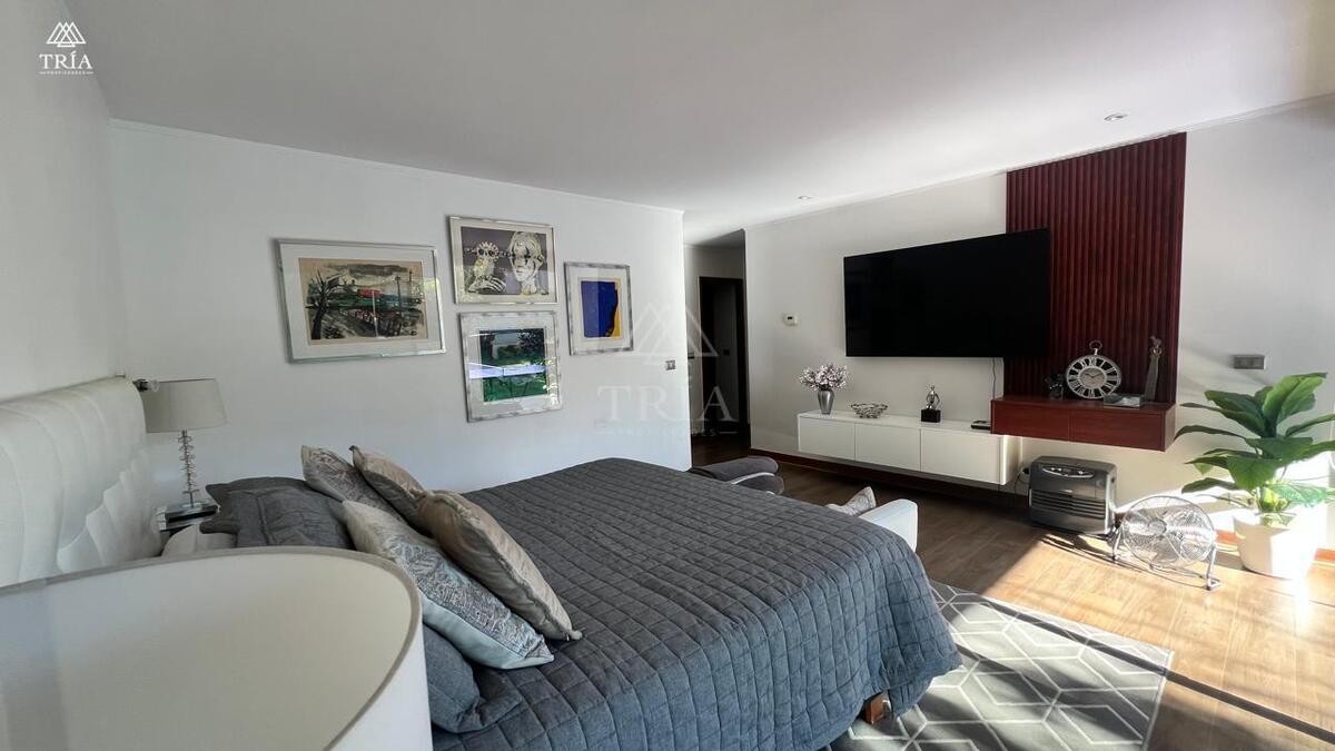 La propiedad dispone de 6 dormitorios y 5 baños, incluyendo dormitorio principal en suite con walk-in closet, además de sala de estar familiar, escritorio y dormitorio de servicio.